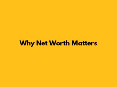 Why Net Worth Matters
