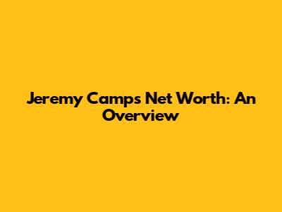 As of 2023, Jeremy Camp's net worth is estimated to be around $8 million. This impressive figure is primarily attributed to his successful music career, including album sales, touring, and songwriting royalties.